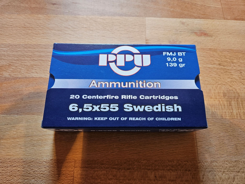 Munition von PPU im Kaliber 6,5x55 Schwedisch mit Vollmantel-