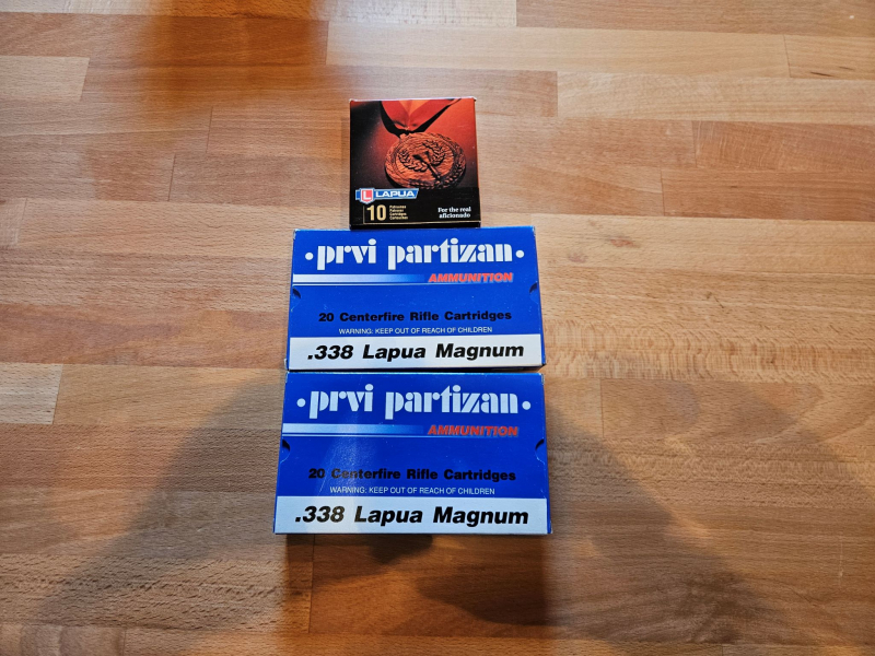Munition im Kaliber 338 Lapua Magnum, verschiedene Sorten.