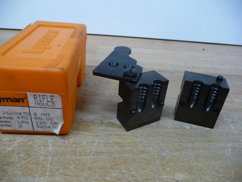 Hier wird eine neue, unbenutzte Doppel-Gießkokille für Geschosse 8 mm mit 165 grain Gewicht zu gießen angeboten.
