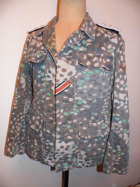 Sie bieten hier auf eine Erbstarnjacke + Schulterstücke + EK Band (Verschlußleistenknöpfe und Taschenknöpfe nicht vorhanden / mit Futterstoff / WIRD ALS KOPIE ANGEBOTEN / Größe ca. M/L / guter Zustand / WH WK2 / keine weiteren Infos aus Erbmasse / Versand 8,00 EUR versichert / NICHTRAUCHERHAUSHALT / keine Garantie, kein Umtausch /