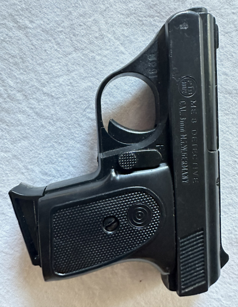 Ich biete eine ME 8 Detective Schreckschusspistole im Kaliber 8mm Knall mit der PTB 100/2 an. Klassische West-Germany Taschenpistole von ME (Melcher). Zustand: mit normalen Gebrauchsspuren, Mechanik funktioniert einwandfrei, Magazin vorhanden. Optischen Zustand bitte den Bildern entnehmen Details: Hersteller: ME / Melcher Modell: 8 Detective Kaliber: 8mm Knall PTB: 100/2 Made in W. Germany