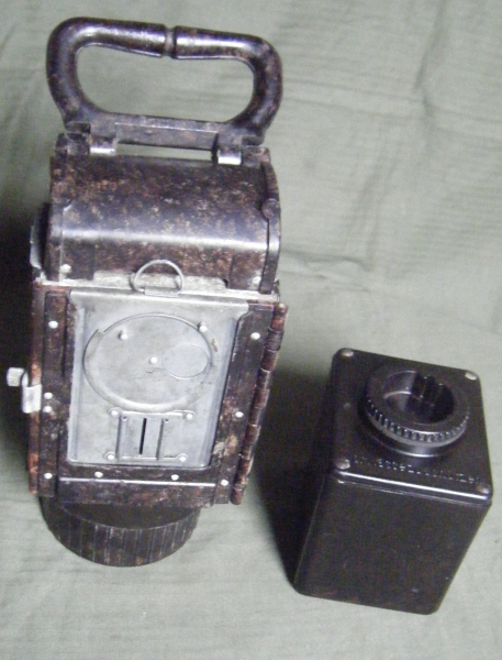 Bieter mit 0 Bewertungen setzen sich VOR ! Gebotsabgabe mit mit mir in Verbindung ! Original Wehrmacht Pressstofflaterne Schöner Zustand mit den dem Alter geschuldeten Gebrauchsspuren keine Risse oder Ausbrüche mit klar geprägtem Waa Adler. Dabei ein Satz der seltenen Verdunklungsschieber und ein dazugehöriger Vorrats Behälter für Karbid . Schönes zusammengehöriges Set das so komplett selten zu finden ist. Bilder gehören zur Beschreibung Unklarheiten sind VOR ! Auktionsende zu klären !