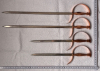 Zum Verkauf steht dieses Konvolut Blankwaffen bestehend aus zwei Degen und zwei Dolchen. Es handelt sich hier um Deko-Blankwaffen/Wandschmuck aus der ehemaligen DDR, 1970er oder 1980er Jahre. Hersteller-Markierung auf einem der Degen: Ein Kühn-Erzeugnis, Handarbeit. Länge Degen: 52,5 cm. Länge Dolch: 36,0 cm.