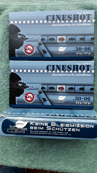Zu verkaufen sind 2 x 60 Patronen CINESHOT im Kal. .30-06, es sind noch die 20er Schachteln, sehr gut erhalten, neuwertig, siehe Bild.