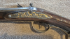 Hoheitl.adliges,halbschäftiges Kurzgewehr L.85 cm Kal.17mm Lauflänge mit fein gravierter Laufhalterung 54 cm.Oktogonaler sehr dickwandiger,konischer Lauf,an der Mündung leicht gestaucht,mit höhenverstellbarer Messingkimme,eingelassenem Messingkorn.Auffälliges reliefiertes Schlossblech und Schlossgegenblech mit vielen Jagdmotiven,auch Hahn und Pfannendeckel ebenso plast.verziert,das alles auf vergoldetem Untergrund.Exorbitante,plastische Bronzemonturen mit jagdl. Motiven,Hirsche Hunde Wälder u.v.m.Der Nußholzschaft ist stark beschnitzt (verschnitten)Das Daumenblech aus Bronze stellt ein Wappen dar.Der Schaft ist hochglänzend,hat einige alte fachmännische Ausbesserungen,eine beschnitzte Backe,im Schuber sind noch einige Eisenkugel vorhanden.Der Schaft endet vorn mit schwarzem poliertem Horn.Ladestock aus Holz.Sammelwürdiges Kurzgewehr