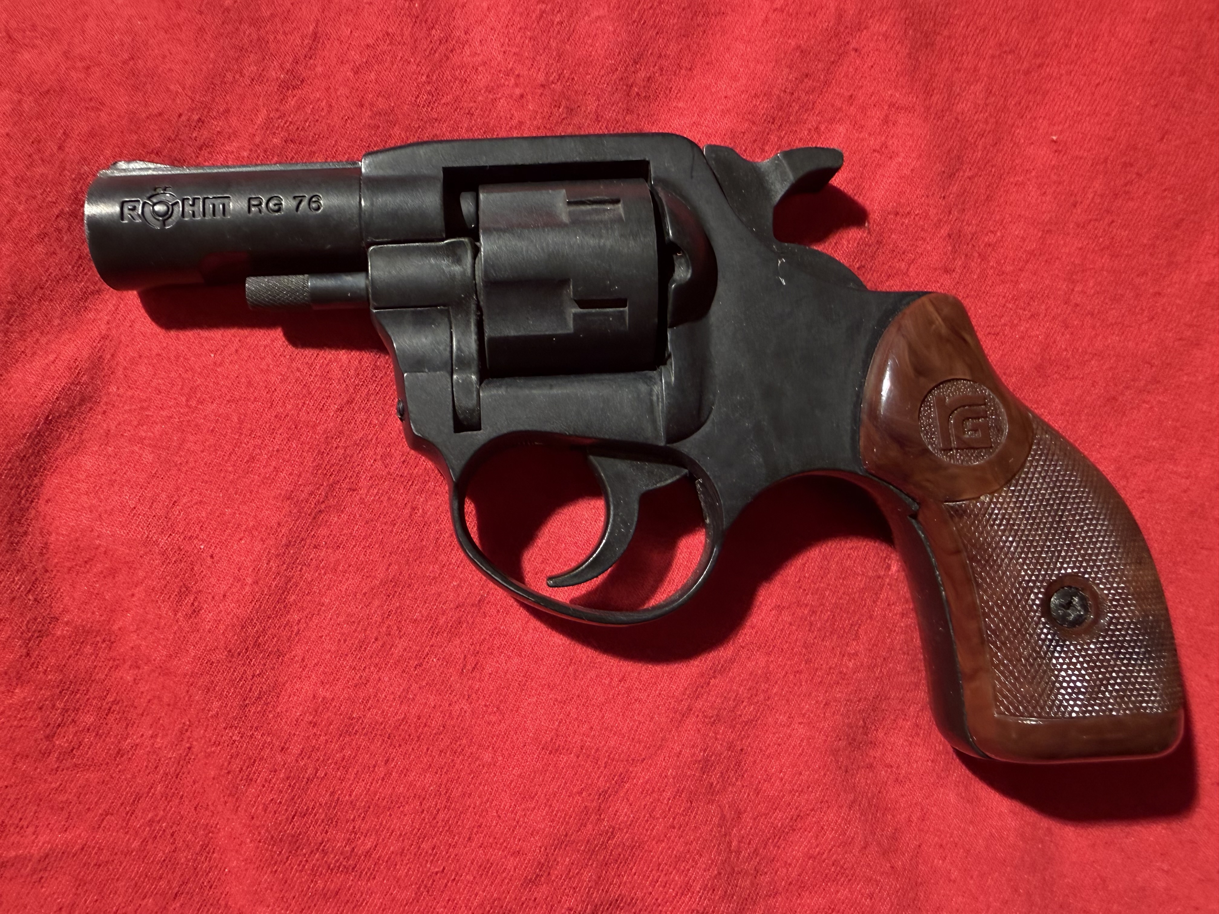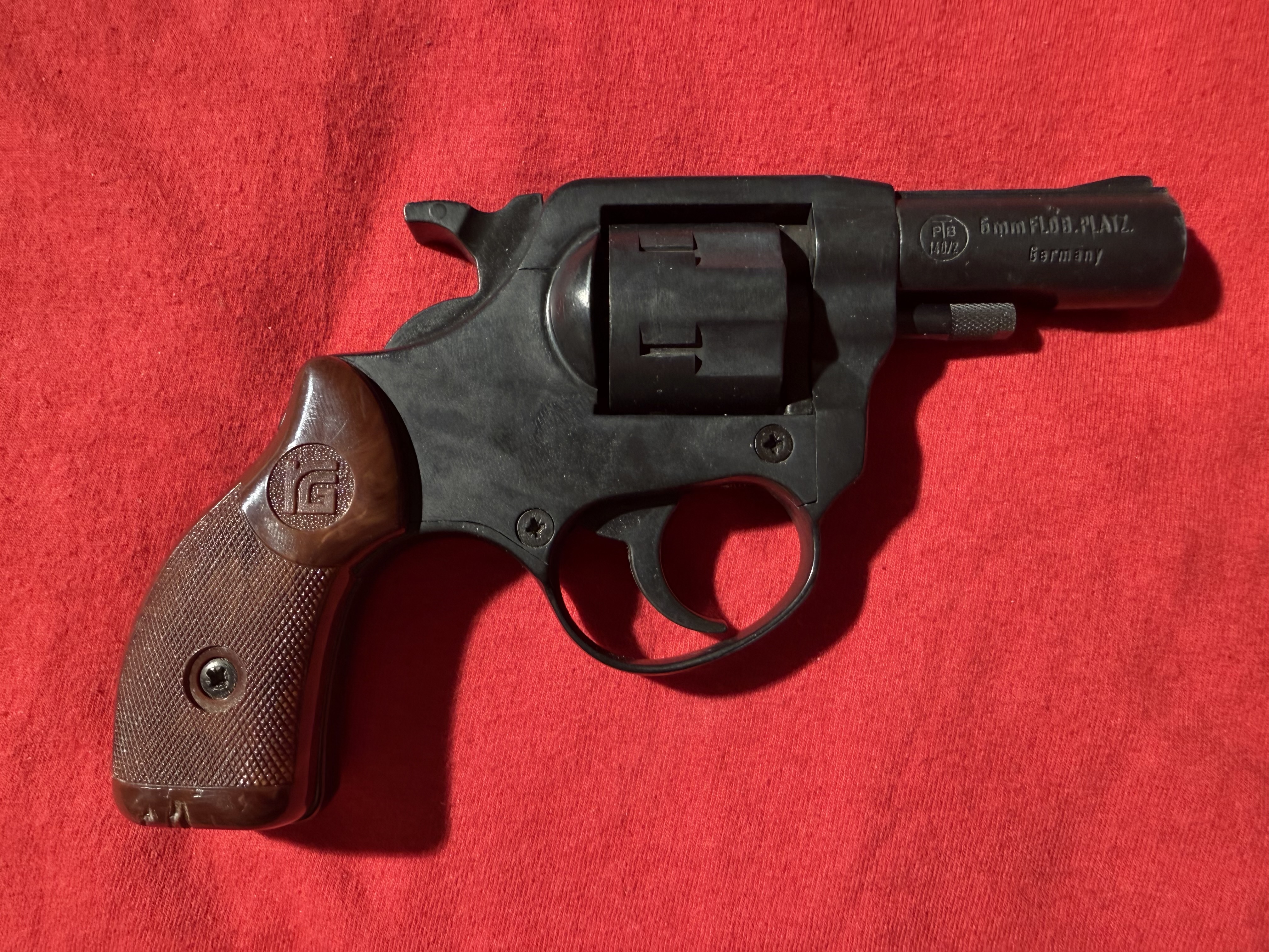 Alter RÖHM RG 76 Revolver - cal. 6mm FLOB.-PLATZ- PTB 140/2, Made in Germany,mit integriertem Abschußbecher ,Brünierung am Laufende leicht angegriffen und rechte Griffschale unten leichte Kratzer,-Siehe alle original Bilder, mechanisch/technisch einwandfrei,Frei ab 18 Jahren,mit Koffer --Versicherter Versand mit DHL und Sendungsverfolgung.
