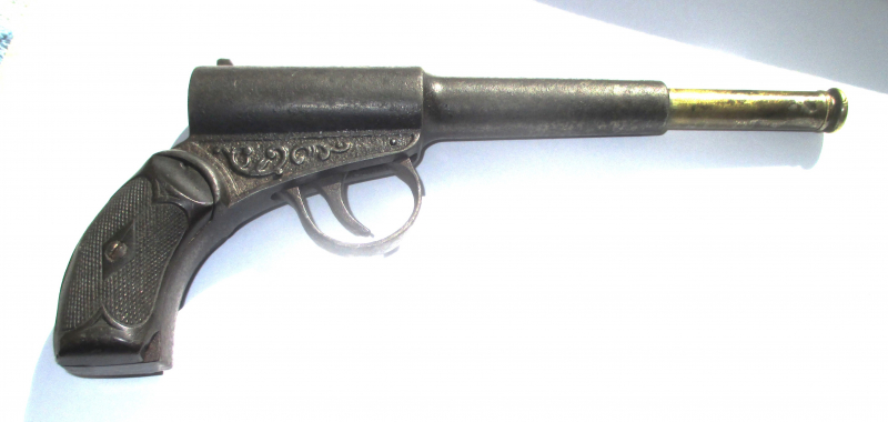 Sehr alte LP , denke um 1920 - 30 .Spannen und abschlagen funktioniert . Wenn sie beim spannen schräge gehalten wird , will sie nicht immer richtig rasten . Vermutlich sollte sie gereinigt und zerlgt werden . Es fehlt die kleine Verschlußschraube hinten am Lauf . Ist auf dem Bild gut zu sehen .Griffschalen mit kleiner Fehlstelle . Privatverkauf . Keine Garantie oder Rücknahme .