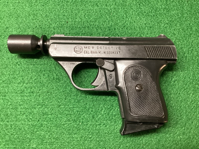 Verkaufe gebrauchte Gaspistole des deutschen Fabrikats MELCHER, Mod. ME 8 Detective, Kal. 8 mm Knall/Gas, mit Original-Abschussbecher zum Verschießen pyrotechnischer Munition, Zulassungszeichen PTB 100-2, amtl. Beschuss Ulm 1992. Die Waffe zeigt stellenweise geringe Abnutzungsspuren an der Brünierung. Zustand siehe Fotos. Verkauf von privat. Keine Garantie/Gewährleistung und Rücknahme!