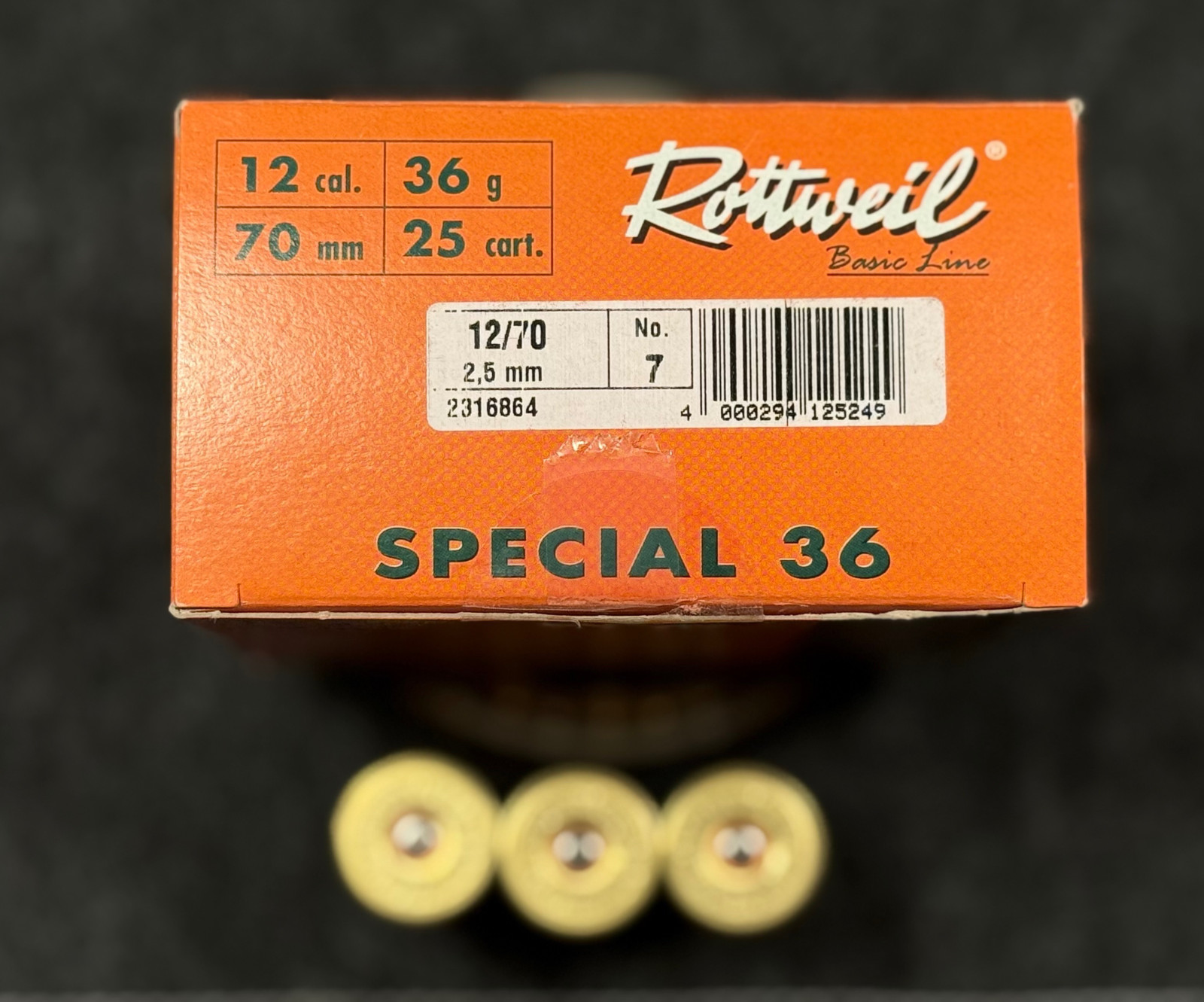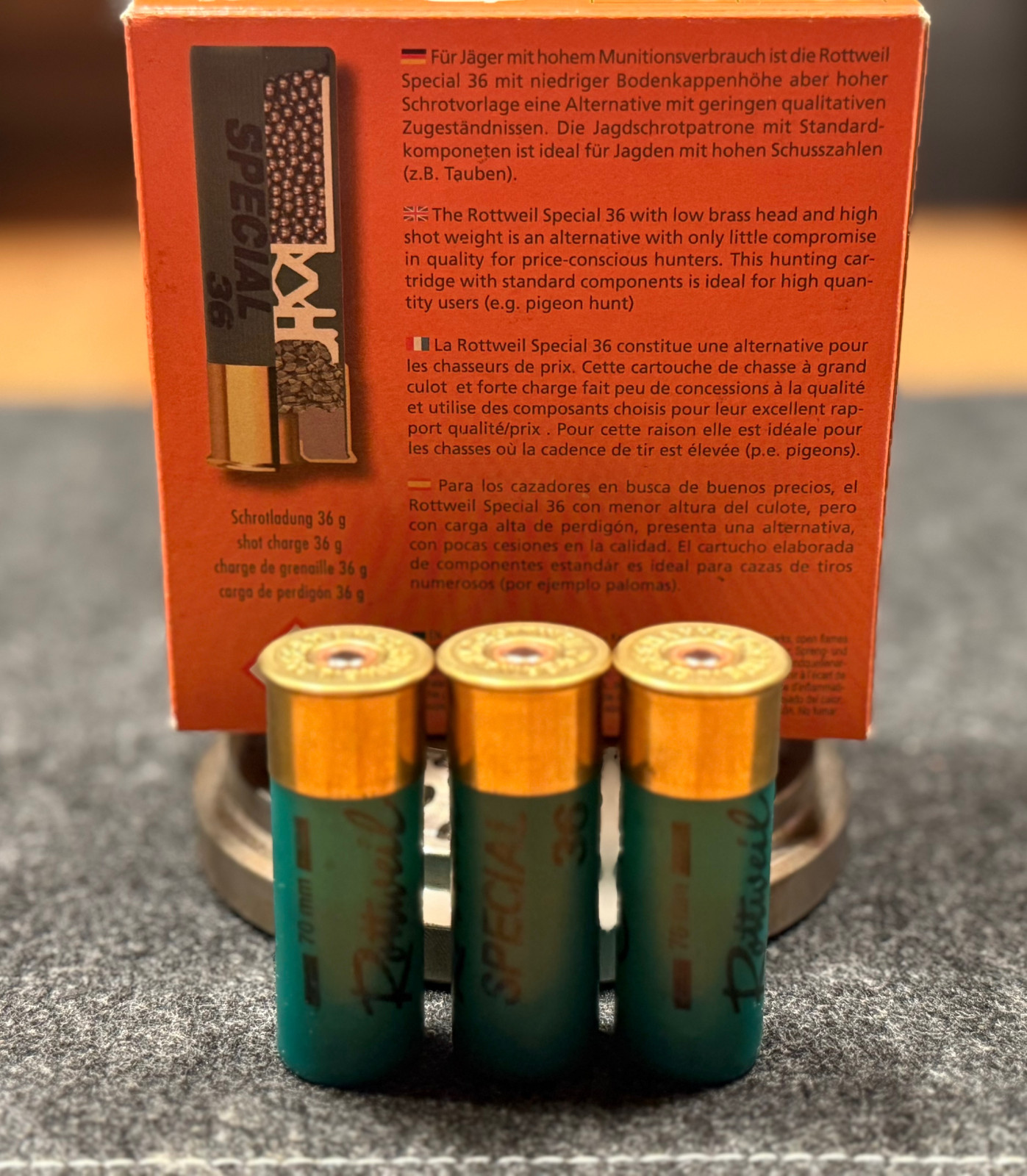 Biete Rottweil Special 36 Schrotpatronen im Kaliber 12/70 an. Die Patronen sind für Jagd und sportliches Schießen geeignet und zeichnen sich durch die bewährte Rottweil-Qualität aus.
