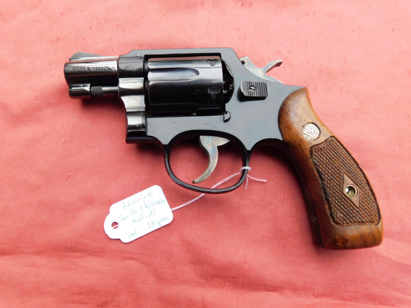 Schwedische Luftwaffe, 3 Kronen gestempelt. Revolver von S&W Modell 12 in der 2 Zoll Ausführung Kal. 38 Spec. 6 Schuss Trommel, Lauf innen spiegelblank und Profil scharf. Timing und Abzug sind super. Die Waffe hat meiner Meinung nach minimale Gebrauchsspuren. Gültiger Beschuss vorhanden.