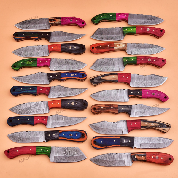 Hier erhalten Sie 20 stück sehr schönes Hand geschmiedetes Taschenmesser Jagd Messer in reizvollem Torsion Muster. Die ebenfalls handgefertigte Lederscheide besteht aus hochwertigem Rindleder und wurde dem Messer genau angepasst.