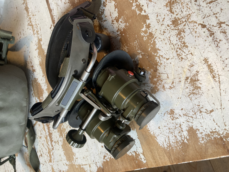 Nightvision goggles made bij olde Delft/ Photonis. This is a late night vision goggle with a case and headmount that is from a previous model. The contraption works really good and gives a wide and long view. works on a 1.5 volt battery.