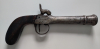 Ich biete hier eine historische Taschenpistole mit Perkussionsschloss an. Der Lauf ist "tromblonförmig" getrichtert. Auf dem Lauf aus Eisen sind zwei Marken. Einmal der Beschuss von Lüttich (ELG) und einmal die Marke von Pirlot Frères (PF mit Krone).