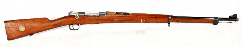 Präzise Waffe, in höchster Qualität gefertigt. Diese Büchse gehörte einem erfolgreichen Ordonnanzschützen. Einzellader. Alle Teile sind nummerngleich. Rahmenvisier mit gebläuter Feder. Spiegelblanker, 75cm langer Lauf mit Originalkornschutz. Nussbaumschaft mit Schaftplakette. Mit deutschen Neubeschuss.
