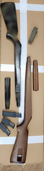 Aufgrund Überbestand kommen so ziemlich alle NICHT EWB - pflichtigen Teile von 2 Stück ERMA M1 .22 lfB zum Verkauf. Der Zustand ist gebraucht und vor Zerlegung waren beide Waffensysteme funktionsfähig. Der originale Schaft ist in fast neuwertigen Zustand. Der zweite Schaft hat einen neuwertigen Paintjob und wird incl. Picatinny -Rails und Cover auf 3 und 9 Uhr verkauft.