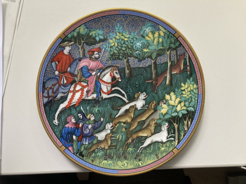 Hier kommt zur Versteigerung ein wunderschöner, einwandfreier aus einer Kunstteller - Edition "Die königliche Jagd im Mittelalter" wurde unter der Offiziellen Schirmherrschaft der Musee International de la Chadde zum Gedenken an das vor 600 Jahren von Gaston Phebus verfasste erste umfassende "Buch über die Jagd" und als eine Hommage an die hohe Kunst der mittelalterlichen Miniaturmalerei geschaffen, die in den hier dargestellten Jagdzenen einen ihrer großen Höhepunkte erreicht hat. AUF DER FUCHSJAGD. EDITION NR. 0454/4800. Zwei Reiter, drei Gesellen/ Treiber, ein Fuchs, eine Meute - 9 Hunde in Wald und Flur. Privatverkauf. DHL-Versand innerhalb Deutschland.