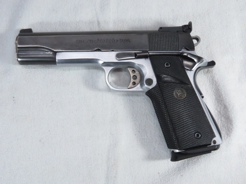 Pistole Simson Suhl Match 1911A1 - Kal. 45ACP. Lauf sehr gut blank. Sehr guter Zustand siehe Bilder. Verkauf nur an EWB.