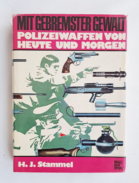 Zur Versteigerung kommen hier das Buch Mit gebremster Gewalt, Polizeiwaffen von Heute und Morgen vom Motorbuchverlag in 1. Auflage aus dem Jahre 1974. Das Buch (Hardcover) hat die Maße 247 x 180 x 45 mm und ist eine hochinteressante Lektüre die sich auf 446 Seiten u.a. mit der Geschichte internationalen Polizeibewaffnung, Munition, Ausrüstung, Schießtechniken, Anschlagarten und noch vielen mehr beschäftigt. Das mittlerweile selten gewordene Buch ist reichlich mit schwarz-weiß Fotografien bebildert, eigentlich nur noch in einem gut sortierten Antiquariat zu bekommen und befindet sich in einem guten Zustand (siehe Bilder) mit nur leichten Gebrauchsspuren, lediglich der Schutzumschlag hat im Laufe der letzten 52 Jahre doch ein wenig gelitten, auf der Vorderseite befindet sich ein kleines Loch und auf der Rückseite hat der Schutzumschlag an der Oberkante einen ca. 35 mm langen Riss.