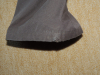 Eine Hose hat am Beinabschluss ein einseitiges kleines Loch.