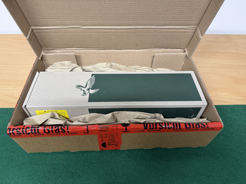 Ich habe lediglich das Paket und die Schachtel zur Kontrolle des Inhaltes geöffnet, ansonsten lag das Glas ausschließlich im Versandkarton neben dem Waffenschrank. Es wurde also niemals montiert oder verwendet.