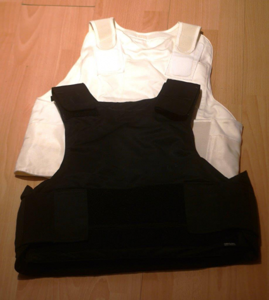 Neuwertig: Mehler, ballistische ("kugelsichere") Schutzweste, schwarz und weiß, Gr. XL, Qualitätsware aus Deutschland / Germany