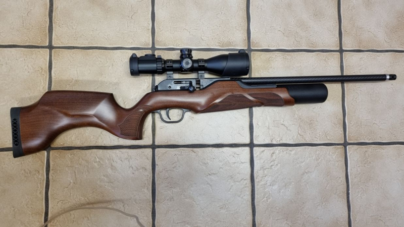 Der Lauf (Lothar Walther) hat einen abnehmbaren Laufmantel aus Kohlefaser und ein 1/2 Zoll UNF Gewinde zum Befestigen eines Schalldämpfers oder eines Kompensators. Die Verarbeitung und die Präzision sind sehr wertig. Montiert ist ein Zielfernrohr