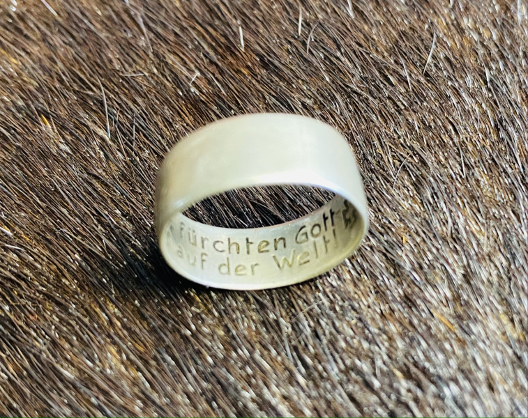 Der Ring ist aus Silber und hat einen Innendurchmesser von 16 mm.