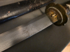 Geschärftes Katana (Dolch) aus rostfreiem Stahl. Edle Ausführung mit Verzierungen in kupferfarbenem Antikfinish, inklusive schwarzer Holzscheide mit elegantem Glanzlack; Grief Länge 14 cm (Gesamt 37,5 cm), Klingenlänge 22 cm.