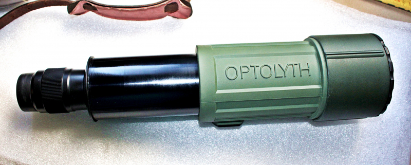 ideal für die Wildbeobachtung - gummierter Tubus - Ausziehtubus noch im Originalöl - mit Lederbehälter und Trageriemen - Länge 27 bis 39cm