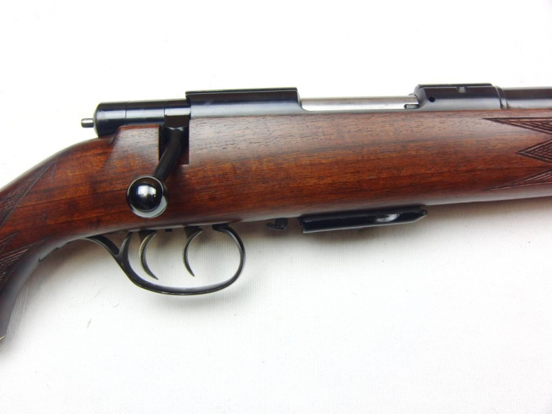 Sie bieten auf eine Repetierbüchse (Stutzen) Anschütz Mod.1533 im Kaliber .222Rem. 50cm Lauflänge mit verstellbarer Klapp-Visierung (Lauf von innen ohne Mängel), Flügelsicherung, deutscher Stecherabzug, herausnehmbares 4-Schuß Magazin, Nußbaumholz-Ganzschaft mit deutscher Backe, Riemenbügel, Schaftlänge 37cm, Gesamtlänge 98,5cm. Wenig geschossen. Sehr guter Zustand!!!