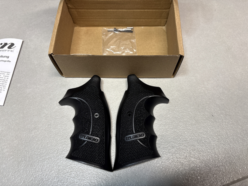 NeueCLUB 30 Griffe Griffschalen schwarz hinten offen für Smith&Wesson Revolver S&W 686 K/L Rahmen Round Butt CLUB30 schwarz. Die Orginal Schraube ist dabei.