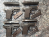 Schreckschuss Pistolen Reck P 6 S, PTB 388/ 2 aus 1991, Reck P 6 S PTB 388 aus 1991, P 6 PTB 48- 69 A aus 1973 alle in Kaliber 8mm K in gebrauchtem Zustand und einmal Reck P 6S, PTB 580 aus KF in gebrauchtem Zustand mit dem seltenen Kaliber .315 K alle in gebrauchtem Zustand. Trockenfunktion ist gegeben. Sehen nach all den Jahren noch recht gut aus. Die Oberflächen haben hier und da ein paar Kratzer, Gebrauchs- und Lagerspuren. Kein weiteres Zubehör. Ein Magazin ist älter als die Waffe.