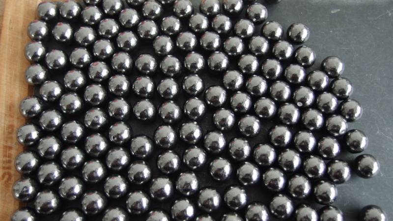 Durch das Trommeln wird das überschüssige Material des Gussbutzens umgeformt. Die Form der Kugel wird dadurch leicht unrund. Dies ist technisch bedingt nicht anders möglich und kein Reklamationsgrund. Der Kugeldurchmesser bewegt sich in einem Toleranzbereich von ca. ± 15 Hundertstel.