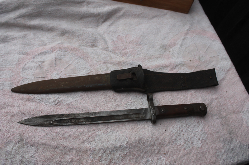 Angeboten wird wird ein Originales M95 Bajonett , Stempelungen gut ersichtlich und der Drücker funktioniert einwandfrei Zustand siehe Fotos beim Kauf mehrerer Artikel wird versucht nur ein Paket zu machen um Versandkosten zu sparen keine Garantie, Gewährleistung, Rücknahme - mit der Abgabe ihres Gebotes sind sie damit einverstanden - Fragen bitte vor dem Bieten und nicht nachher sagen was nicht passt ! Versand nach Deutschland 17.-