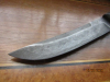 Messer mit Damastklinge und Griff aus Büffelhorn. Schöner Zustand . Diese Art des Damastes nennt sich "kleine Rosen" und ist schwierig zu schmieden.  Dieses ist kein Ätzdamast.  Die Gesamtlänge beträgt 24 cm und die freie Klingenlänge ist 13 cm. Keine Herstellermarkierung und keine Scheide vorhanden.