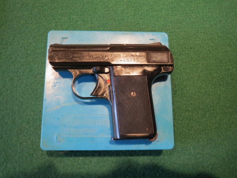 Biete eine Pistole Kal. 9mm der Fa. Reck Modell P6 in 8mm an. Stammt aus einer Auflösung, da ich keine Patronen zu dem Stück habe konnte ich die Funktion nicht prüfen, Mechanik funktioniert. Zugehörige Kunststoffschachtel und die Bedienungsanleitung sind dabei. Eine Griffschale ist gebrochen und wurde geklebt. Privatauktion ohne Gewährleistung, Garantie oder Rücknahme.