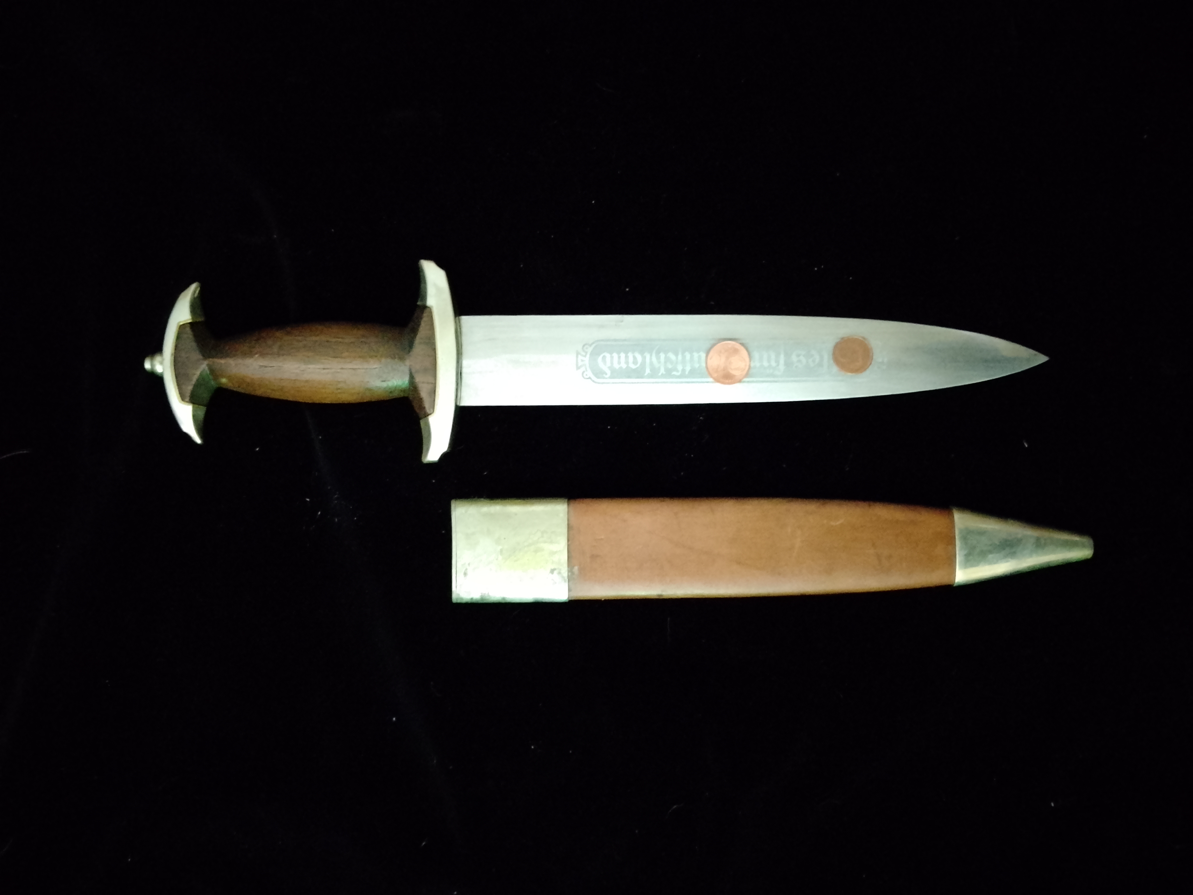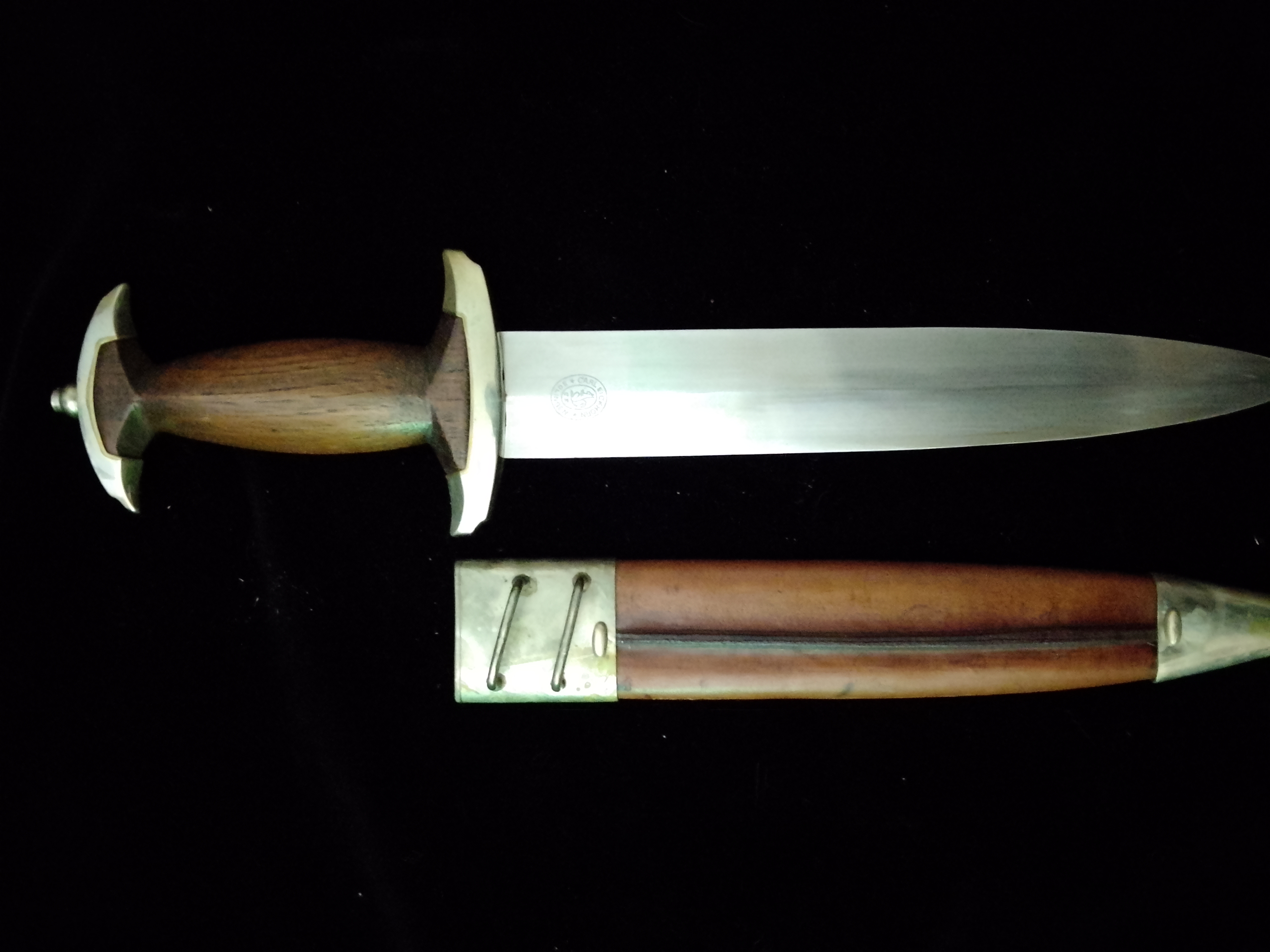 Mir unbekannter Dolch, entspricht in etwa einem Schweizer Dolch oder einem hohlbein Dolch welche als Vorlage für die spätere Einführung der Sa und Ss- Dolche galten.