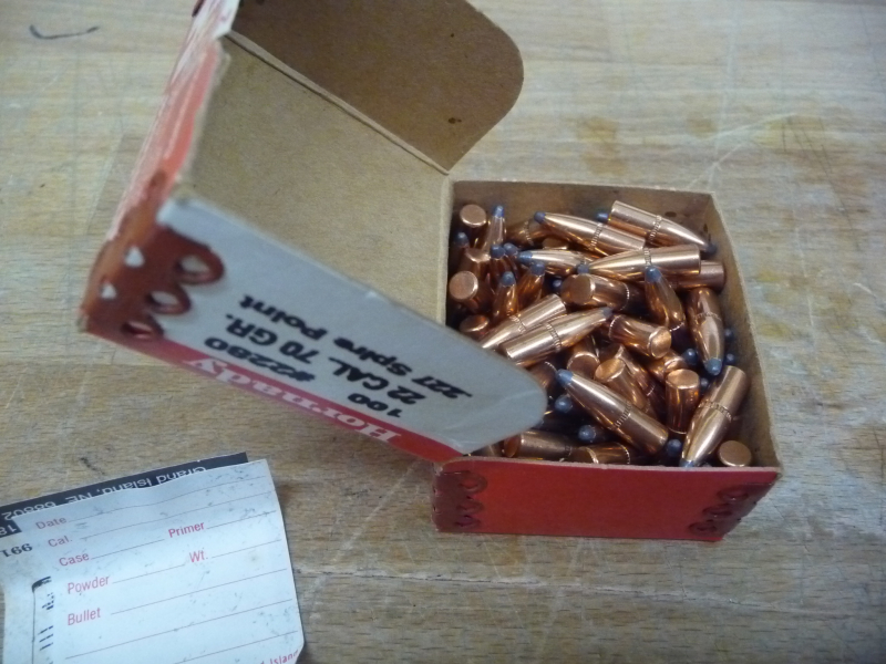 Hier werden z.B. eine angebrochene, fast volle Packung an Hornady Geschossen im Kaliber .22 angeboten.