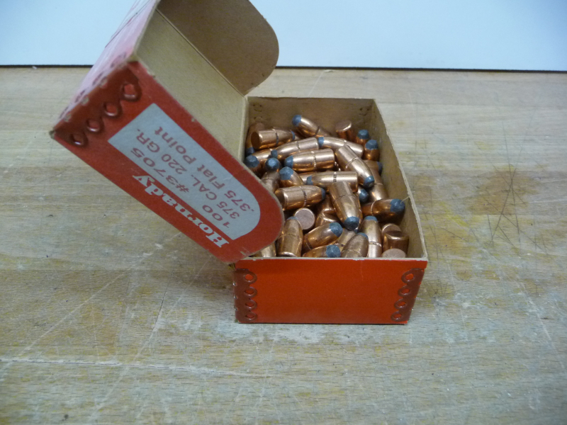 Hier wird z.B. eine angebrochene, fast volle Packung an Hornady Geschossen im Kaliber .375 angeboten.