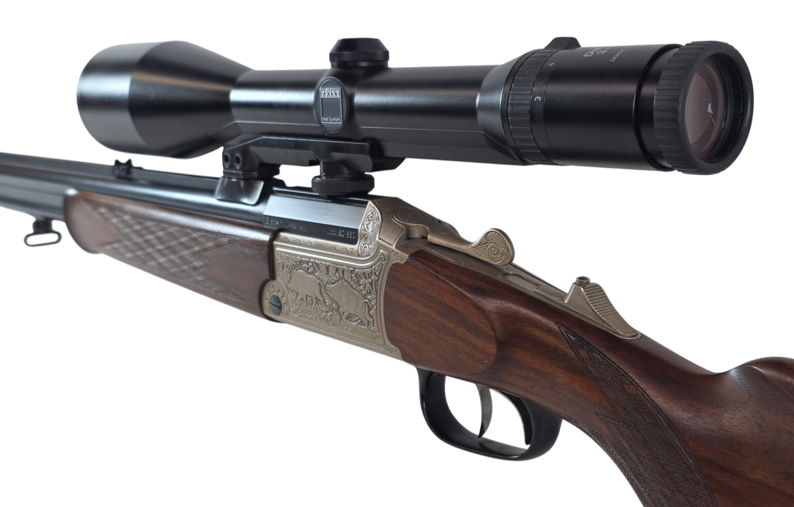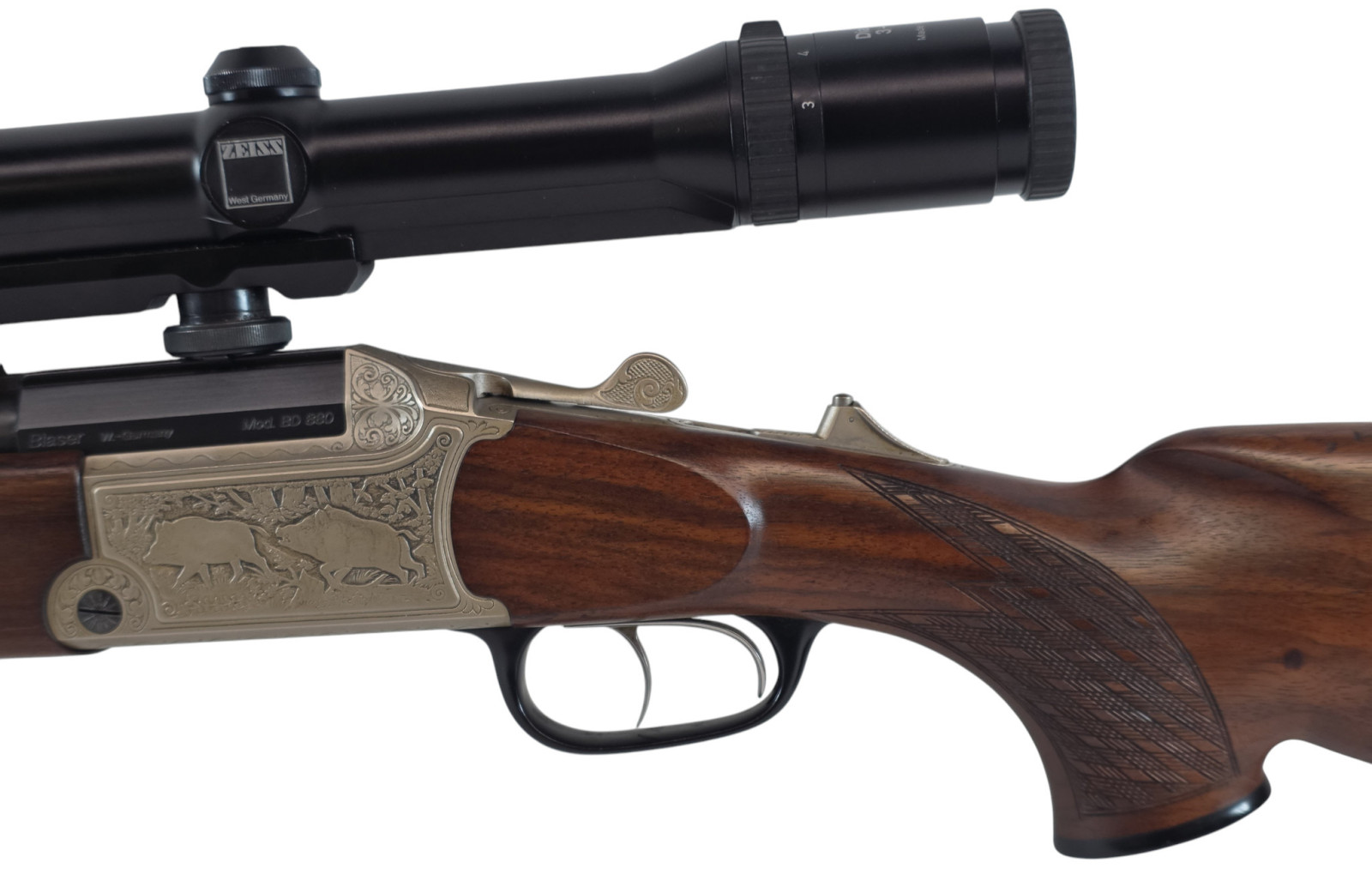 Blaser BD 880 Bockdrilling im Kal.: 30-06 22Hornet 16/70 Luxus links Schaft mit Zeiss 3-12X56