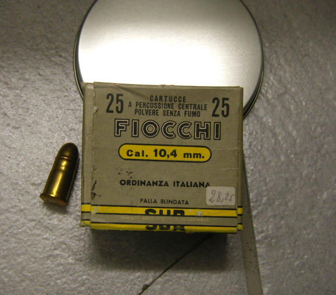 1 Packung mit noch 24 Patronen ( 1 fehlt in der Packung) des seltenen Kalibers 10,4 italienisch Ordonanz – Hersteller Fiocchi -– non corrosive -
