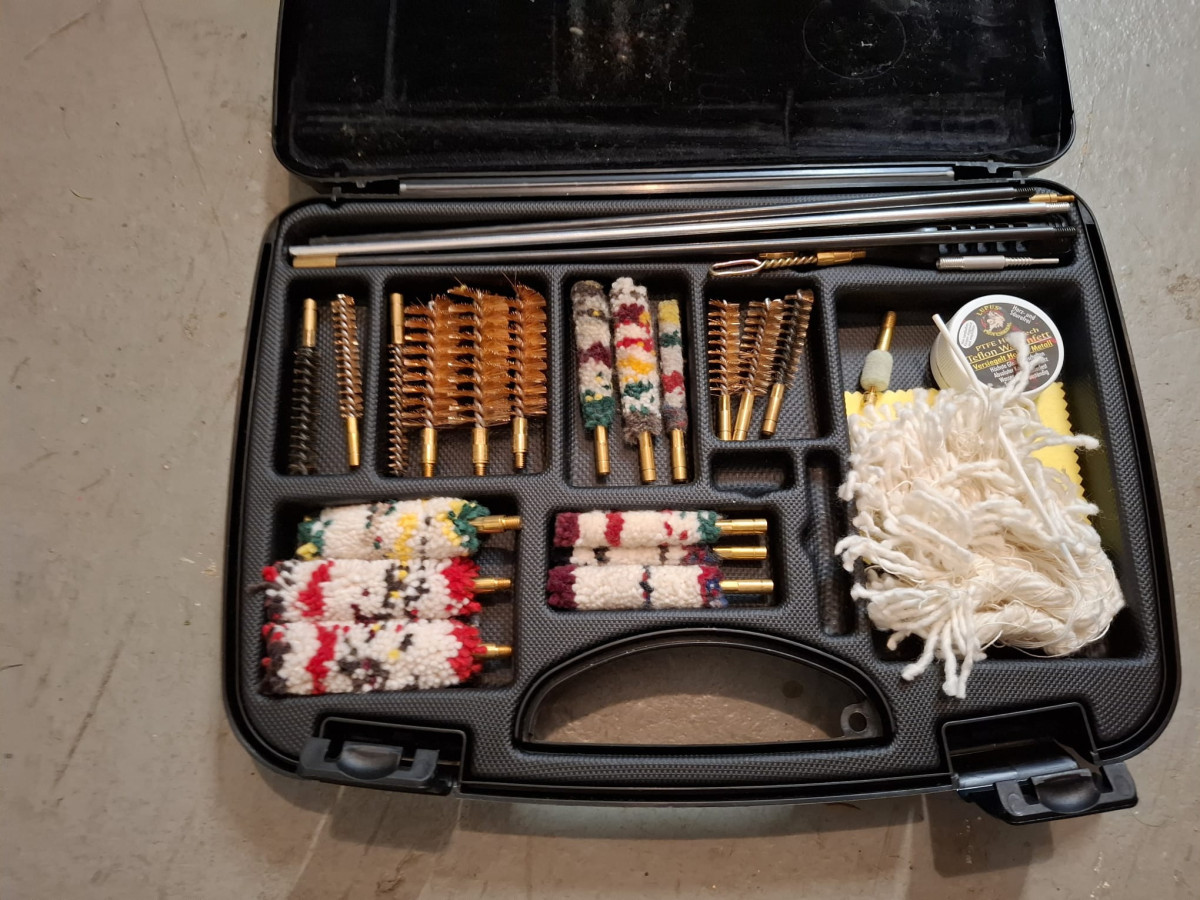 Konvolut Waffenreinigungszubehör aus Nachlass, inkl. Koffer wie abgebildet, neu oder zumindest neuwertiger Zustand/span>