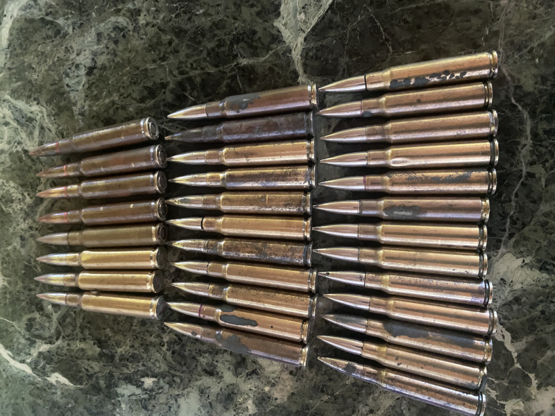 Zur Versteigerung kommen 32 Patronen 7,5x54 MAS. Die Patronen befinden sich wegen falscher Lagerung in keinem nicht sehr schönen Zustand! Das Messing ist angelaufen und hat korrosions Flecken. Die Patronen sind ehr etwas zum Sammeln wie zu schießen. Die Stempelung zeigt den Jahrgang 38, 39, 40, 59 und 64 auf! Auf Grund des Zustandes und des Alters übernehme ich keine Garantie auf Funktion falls die doch jemand verschießen möchte!!! Zustand entnehmen Sie den Bildern. Bei Fragen bitte melden!