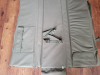 Die Tasche besitzt eine halbstarre Hülle mit zwei innenliegenden Zubehörtaschen und einer aufklappbaren Liegeflächenerweiterung.