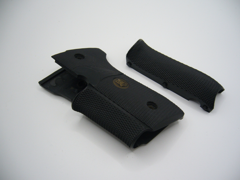 Zur Versteigerung kommen Griffschalen für eine Beretta 92, gut geeignet für große Hände, da diese das Griffstück vollständig umschließen. Gebraucht, aber keine Gebrauchsspuren äußerlich zu sehen.