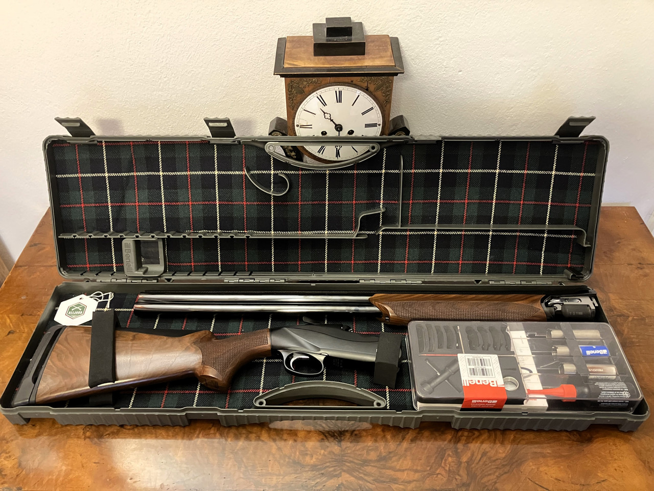 Versteigert wird die abgebildete Bockflinte Benelli 828U (Stahlschrotbeschuss) in 12/76 in Originalverpackung. Die Waffe ist in einem sehr gepflegten Zustand. Ich konnte keine wesentlichen Gebrauchsspuren erkennen : - )