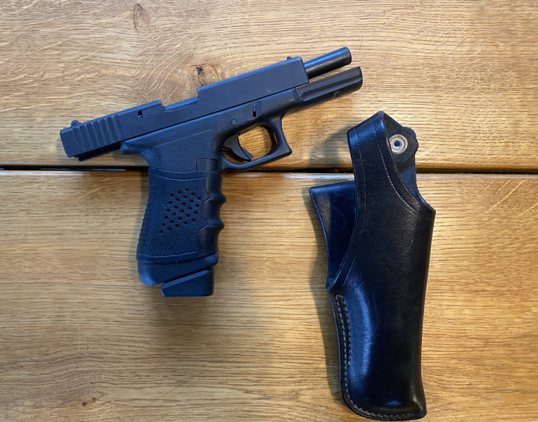 Glock 17 Gen 2 / Kal. 9x19 / gut gebrauchte Kurzwaffe / Magazin mit Extender + 2 / Lederholster / Fragen und mehr Bilder gerne telefonisch: 01629740067