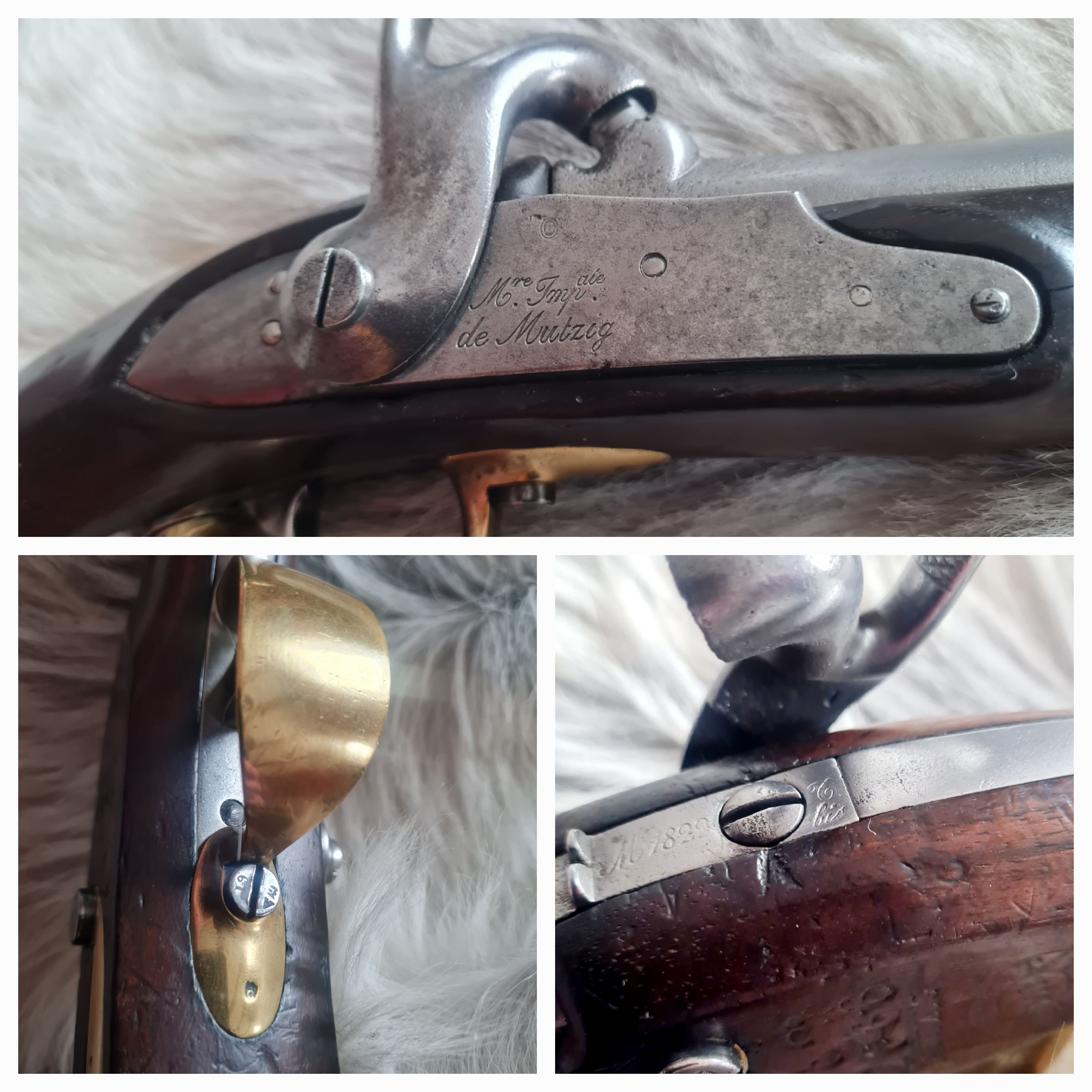 Französische Perkussionspistole M1822 in einem sehr guten Zustand. Kplt. mit Abnahmen. Schlossplatte mit Hersteller "Manufacture imperiale de Mutzig". Das Schloss rastet gut bzw. straff ein, die Feder hat ordentlich Druck. Die Pistole ist mehrfach gestempelt und wurde nicht "verputzt". Für Sammler in diesem Zustand ein interessantes, schönes Stück. Lediglich der Ladestock wurde nicht Orginal ergänzt. Versand ins Ausland bitte auf Anfrage, Porto weicht hier ab. Kein Verkauf an Mitglieder unter 5 Bewertungen. Privatverkauf daher keine Gewährleistung, Rücknahme oder Umtausch nach EU Recht für Gebrauchtwaren.
