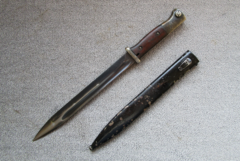 Bieter hier dieses originale Seitengewehr der Wehrmacht für den Karabiner 98k an, Hersteller: Dürkopp-Werke, Bielefeld 1937, nummerngleiches Stück, frühe dreistellige Seriennummer (709) viele Abnahmestempel, mit normalen Gebrauchsspuren, unberührter Originalzustand, für das Alter würde ich den Zustand als sehr gut bezeichnen, auch der schwarze Schutzlacke der Scheide ist noch zu großen Teilen erhalten, siehe dazu auch die Fotos, Fragen hierzu gerne per email, allen Bietern viel Erfolg, Versand nur innerhalb Deutschlands oder Auslandsversand nach vorherige Anfrage möglich, vielen Dank.