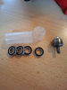 Das Problem sind die Kugellager ,war vorher ein Walzenlager verbaut. Die Schraube wurde werkseitig schief eingebaut und riss immer wieder ab, habe ein größeres Gewinde eingedreht daher passt das Walzenlager nicht mehr und musste zwei Kugellager einbauen, die halten der Belastung nicht so lange Stand,bekommt man bei Amazon (siehe Bilder)